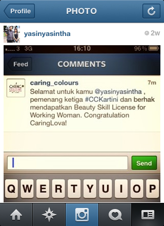 Mencantumkan wajah dan cerita para wanita hebat yang pernah saya make up menggunakan produk Caring Colours dan juga Martha Tilaars, alhamdulilah saya mendapatkan kesempatan untuk meraih juara 3 dalam lomba Caring Colours Kartini tersebut. Senang dan bangga tentunya meskipun menjadi pemenang ketiga tapi tetap senang.