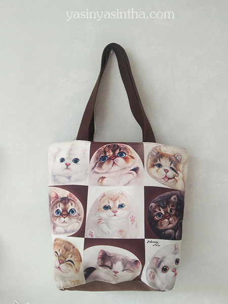Saya memiliki beberapa tas dengan beberapa model dan warna. Tapi saya selalu jatuh cinta pada tas kesayangan saya yang gambarnya si emeng yang satu ini, bahannya lembut tapi tahan air asal jangan direndam hehhe. Meskipun beberapa orang bilang agak kekanak-kanakan gimana atuh da cinta itu buta *kedipkedip.
